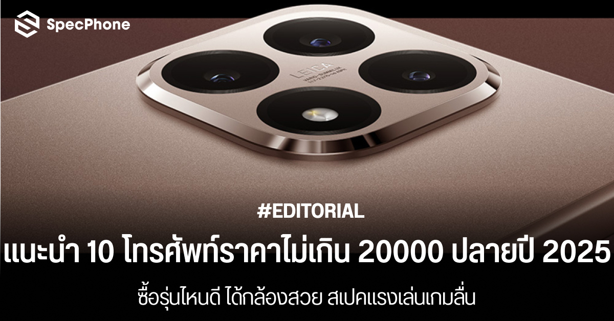 แนะนำ 10 โทรศัพท์ราคาไม่เกิน 20000 ปลายปี 2025