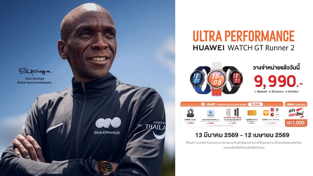 กรุงเทพฯ 25 มีนาคม 2569 – สำหรับนักวิ่ง ไม่ว่าคุณจะเป็นมือใหม่ที่เพิ่งเริ่มต้นก้าวแรก หรือนักวิ่งมากประสบการณ์ที่ตั้งเป้าหมายสู่เส้นชัยมาราธอน การฝึกซ้อมที่ชาญฉลาดและการเข้าใจร่างกายตัวเองคือหัวใจสำคัญสู่ความสำเร็จ หัวเว่ยเข้าใจสิ่งนี้ดี จึงได้พัฒนานาฬิกาอัจฉริยะ HUAWEI WATCH GT Runner 2 ที่ออกแบบมาเพื่อเป็นโค้ชส่วนตัวระดับโปรบนข้อมือ เพื่อยกระดับการฝึกซ้อมให้นักวิ่งที่ต้องการก้าวไปสู่ระดับโปร ด้วยนวัตกรรมที่คิดค้นมาเพื่อนักวิ่งโดยเฉพาะ โดยขอแนะนำเคล็ดลับ 5 ข้อดังต่อไปนี้
