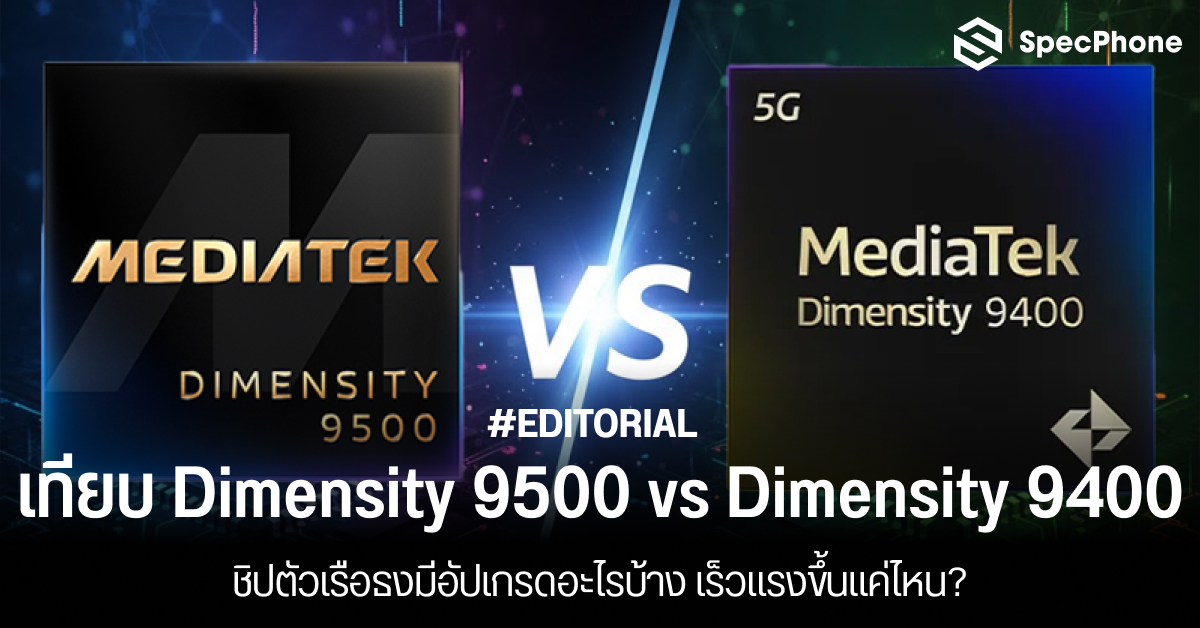 ในการแข่งขันกันของชิปประมวลผลระดับเรือธง MediaTek ได้พิสูจน์ตัวเองในฐานะคู่แข่งที่ทำได้ดีมาโดยตลอด เมื่อเทียบกับอีกค่ายอย่าง Snapdragon 8 Elite Gen 5 (ดูการเปรียบเทียบ) ซึ่งการมาถึงของ Dimensity 9500 ก็เป็นการตอกย้ำความแรงอีกครั้ง เพราะชิปตัวใหม่ล่าสุดนี้มีการอัปเกรดจากรุ่น Dimensity 9400 ที่ดีขึ้นหลายอย่าง ทั้ง CPU, GPU, AI (NPU), การจัดการกล้อง และการเชื่อมต่อที่ล้ำหน้ายิ่งขึ้น ไปดูกันว่าระหว่าง Dimensity 9500 vs Dimensity 9400 รุ่นใหม่กับรุ่นเก่าอัปเกรดอะไรไปบ้าง และจะเร็วแรงกว่าเดิมแค่ไหน