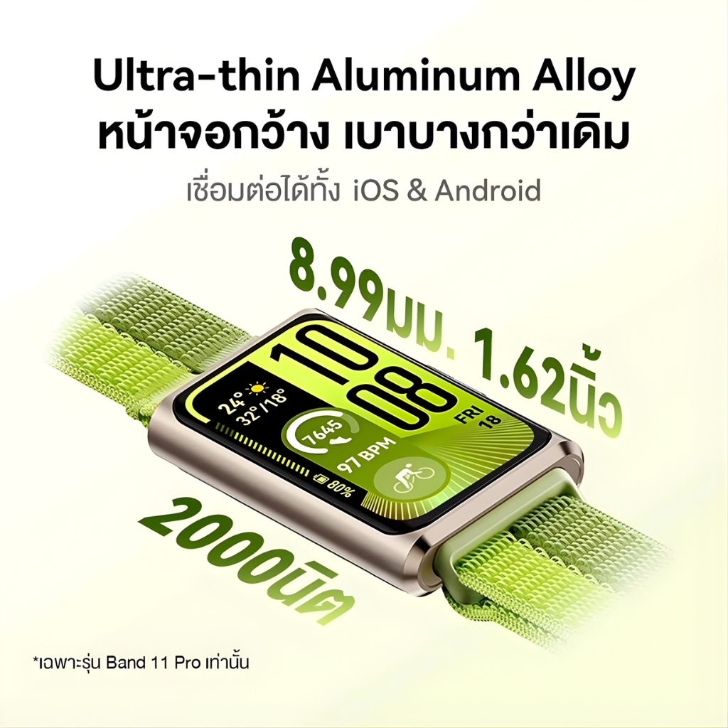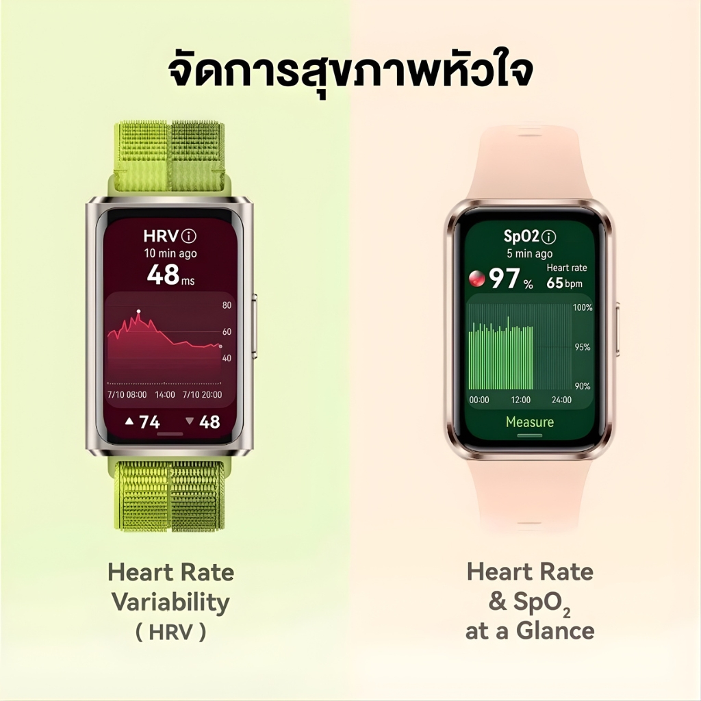 HUAWEI Band 11 Series พร้อมช่วยดูแลสุขภาพอย่างรอบด้านด้วยเทคโนโลยีอัจฉริยะขั้นสูง เช่น ระบบติดตามการนอนหลับที่ดียิ่งขึ้น อาทิ ตรวจจับการหายใจขณะหลับ[1] สรุปการงีบหลับ และประเมินการฟื้นตัวของร่างกายผ่านค่า HRV[2], อัตราการเต้นของหัวใจ รวมถึง SpO2 นอกจากนี้ ยังมีฟังก์ชัน All-Day HRV Monitoring ที่ติดตามสุขภาพหัวใจได้ตลอดวัน และเตรียมยกระดับการดูแลให้ครอบคลุมยิ่งขึ้น ด้วยแอปแจ้งเตือนภาวะหัวใจห้องบนสั่นพริ้ว (PWAP) ที่จะมาในเร็วๆ นี้ พร้อมเสริมสุขภาวะจิตใจด้วย Emotional Wellbeing 2.0 ที่วัดสภาวะทางอารมณ์ได้ 12 แบบ[3] รวมถึงการดูแลสุขภาพผู้หญิงด้วยปฏิทินรอบเดือน Intelligent Cycle Insights ยิ่งไปกว่านั้นยังสามารถเชื่อมต่อกับ HUAWEI Scale เพื่อการวิเคราะห์ร่างกายที่ลึกซึ้งยิ่งขึ้น