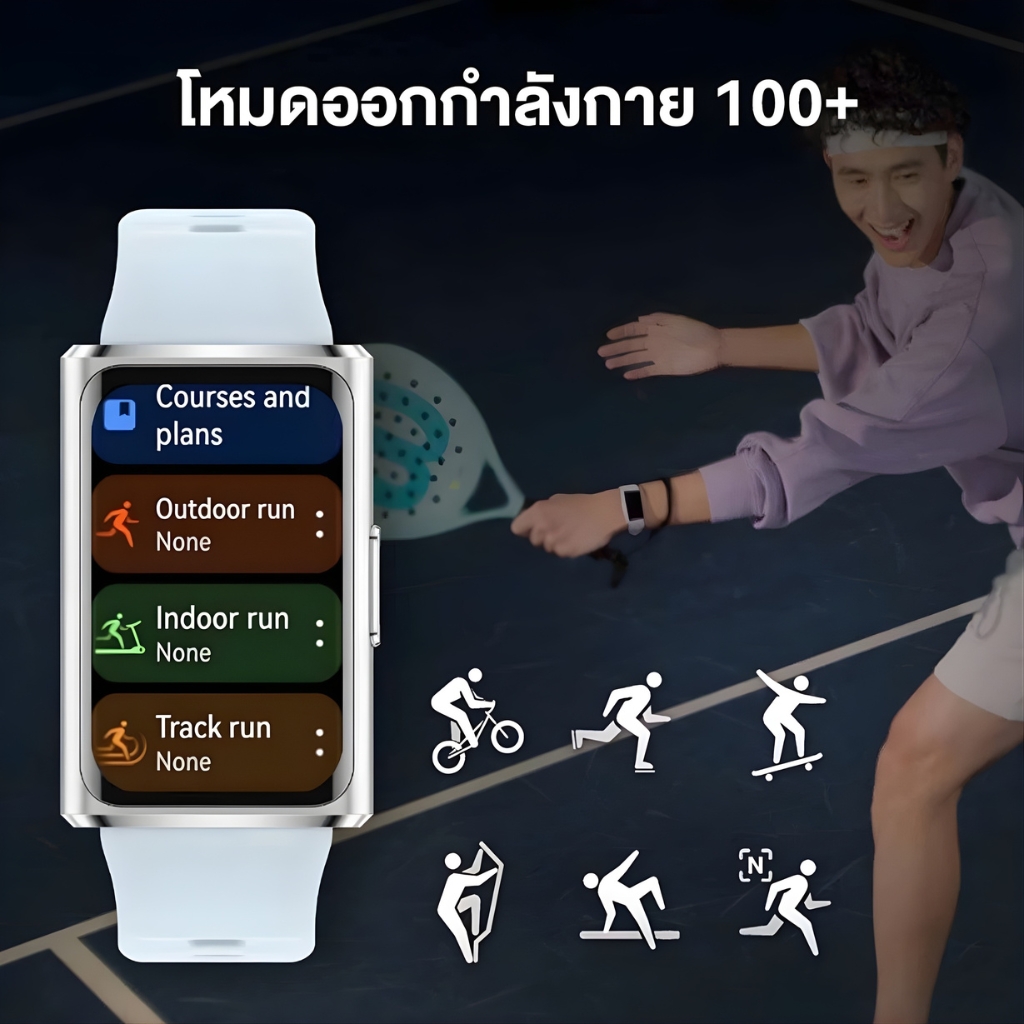 สำหรับสายสปอร์ต HUAWEI Band 11 Series ครบครันด้วยโหมดออกกำลังกายกว่า 100 รูปแบบ[4] พร้อมระบบฝึกซ้อมมืออาชีพ และ Activity Rings ที่ช่วยให้บรรลุเป้าหมายได้อย่างแม่นยำ และวางใจได้ด้วยแบตเตอรี่ยาวนานสูงสุด 14 วัน (เมื่อใช้งานเบา) ตัวเครื่องดีไซน์บางเพียง 8.99 มม. น้ำหนักเริ่มต้น 16 กรัม พร้อมหน้าจอ AMOLED ขนาดใหญ่และคมชัด 1.62 นิ้ว รวมถึงไม่พลาดทุกการแจ้งเตือนด้วยการรองรับ LINE Notification และใช้ได้กับทั้ง iOS และ Android ที่สำคัญในรุ่น HUAWEI Band 11 Pro ยังมาพร้อม GNSS ในตัว และโหมด Track Run เพื่อติดตามการวิ่งที่เหนือกว่า