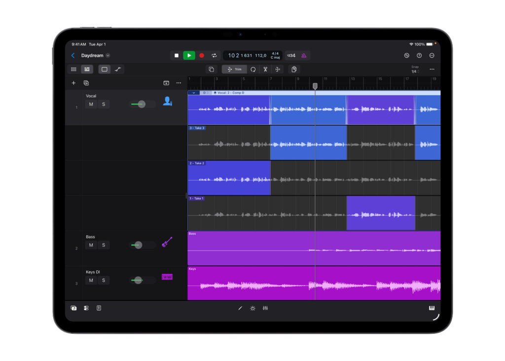 คุณสมบัติ Quick Swipe Comping ชั้นแนวหน้าของอุตสาหกรรมมาอยู่ใน Logic Pro สำหรับ iPad แล้ว