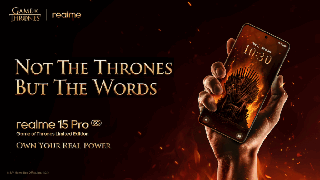 realme 15 Pro Game of Thrones Limited Edition จึงไม่ใช่เพียงงานออกแบบสมาร์ตโฟน แต่คือการสร้างอิทธิพลทางวัฒนธรรม จากความร่วมมือกับหนึ่งในแฟรนไชส์ความบันเทิงที่ยิ่งใหญ่ที่สุดในโลก ทำให้ realme ก้าวขึ้นสู่การเป็นแบรนด์สมาร์ตโฟนที่ “อัดแน่นด้วยประสบการณ์สนุกสนานและความคิดสร้างสรรค์สูงสุด” ขณะเดียวกัน แคมเปญ “Own Your Real Power” ดังก้องราวเสียงเพรียกจากสนามรบ สะท้อนหัวใจของคนรุ่นใหม่ที่กำลังเผชิญโลกอันซับซ้อน กล้าที่จะโอบรับตัวตน ทลายข้อจำกัดเดิม และกำหนดเส้นทางชีวิตด้วยพลังของตนเอง
