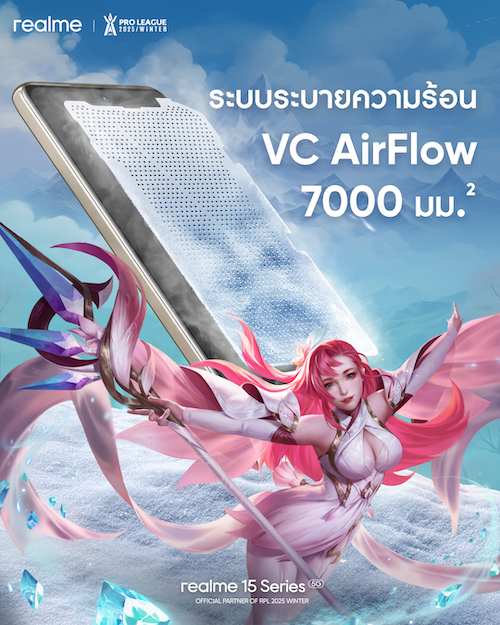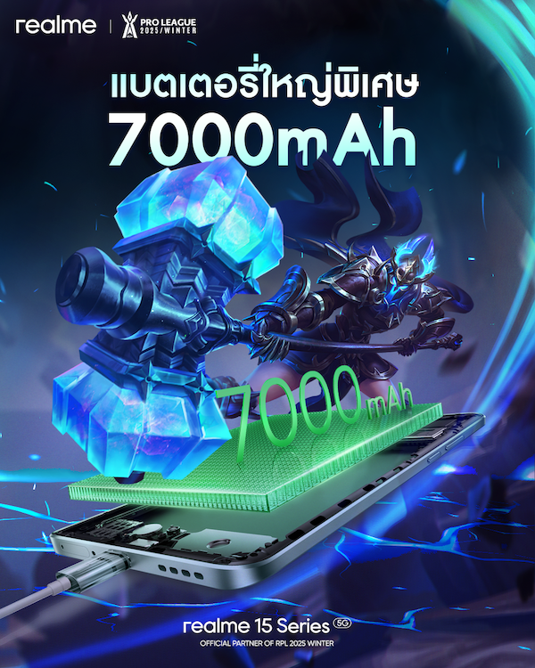 ด้วยพลังของเทคโนโลยีและความมุ่งมั่นในการยกระดับประสบการณ์เกมมิ่งให้เข้าถึงคนรุ่นใหม่ realme เดินหน้าสนับสนุนวงการอีสปอร์ตไทยอย่างต่อเนื่อง การร่วมเป็นส่วนหนึ่งของ RoV Pro League 2025 Winter สะท้อนวิสัยทัศน์ของแบรนด์ที่พร้อมผลักดันเกมเมอร์ให้ปลดปล่อยศักยภาพอย่างเต็มที่ ทั้งในสนามแข่งขันและในชีวิตจริง พบกันที่ บูธ realme (ก่อนทางเข้าเช็กอินงาน) วันที่ 25–26 ตุลาคม 2568 ณ Bitec Live ไบเทค บางนา ตั้งแต่เวลา 10.00 น. เป็นต้นไป เพื่อมาร่วมเชียร์ ร่วมเล่น และสัมผัสพลังเกมมิ่งระดับโปรลีกจาก realme 15 Series 5G สมาร์ตโฟนที่เร็ว แรง และลื่นไหลในแบบที่เกมเมอร์ตัวจริงต้องมี