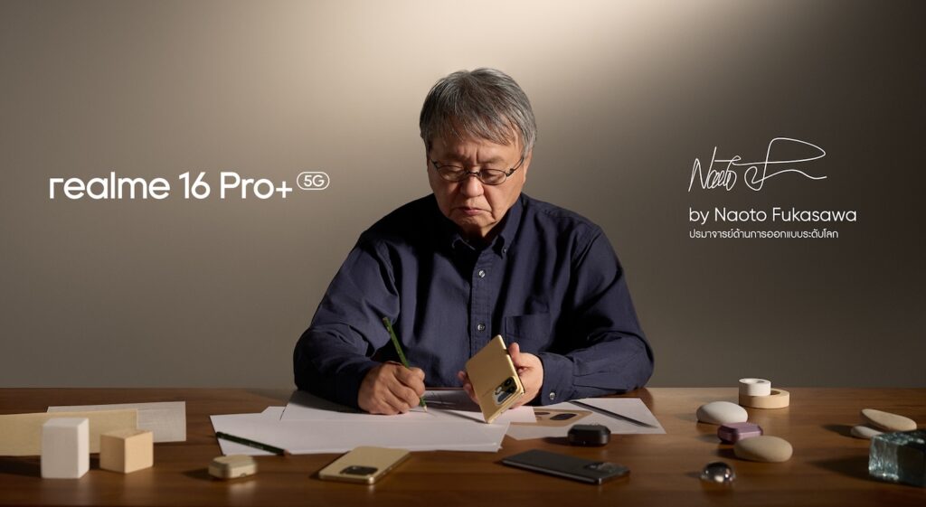 กรุงเทพฯ 11 มีนาคม 2569– realme (เรียลมี) แบรนด์สมาร์ตโฟนที่เติบโตเร็วที่สุดในโลก ประกาศการคอลแลบสุดปังอีกครั้งหลังจากห่างหายไปนานถึง 3 ปี กับปรมาจารย์ด้านการออกแบบระดับโลก “นาโอโตะ ฟุกาซาวะ (Naoto Fukasawa)”พร้อมนำเสนอ “Urban Wild Design”สุดล้ำบนสมาร์ตโฟนเรือธงใหม่อย่าง “realme 16 Pro+ 5G” ซึ่งนับเป็นครั้งแรกในการร่วมออกแบบกับ นาโอโตะ ฟุกาซาวะ ในตระกูล Number Series นำเสนอดีไซน์รูปแบบใหม่ที่ผสานแนวคิดธรรมชาติกับงานฝีมือร่วมสมัยระดับเฟิร์สคลาส เพื่อสร้างสรรค์ผลงานออกแบบระดับ Master Design พร้อมโทนสีใหม่ล่าสุด และยังเลือกใช้วัสดุไบโอเบสออร์แกนิกซิลิโคนเป็นครั้งแรกของวงการ ผสมกับเทคนิคการรังสรรค์ความงามแบบอัปเกรดจนเกิดเป็นผลงานชิ้นเอกที่โลกสมาร์ตโฟนต้องตะลึง!