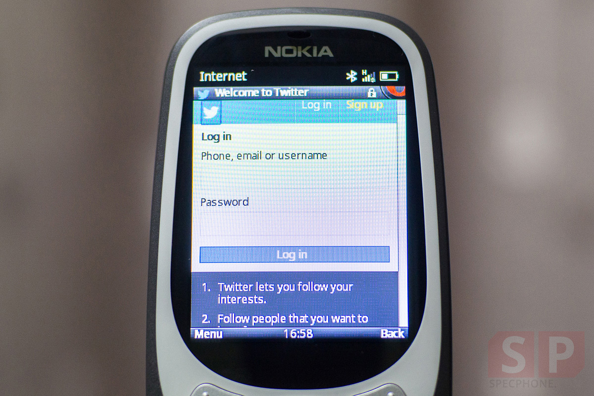 แกลเลอรี่ด้านบนก็จะมีรวมมาหลายแอปหน่อยนะครับ เริ่มจาก Facebook ซึ่งสามารถใช้งานได้จริงๆ หลักการของมันก็คือการเปิดเว็บเบราเซอร์ในเครื่องขึ้นมา แล้วเข้าไปที่เว็บไซต์ Facebook นั่นเอง ทำให้หน้าตาของมันก็คือ Facebook แบบหน้าเว็บ สามารถอ่านโพสต์ ดูรูป อัพรูป อัพสเตตัสได้ (แต่ไม่มีบอกนะว่าโพสจาก 3310) ส่วนของ Twitter ก็ใช้หลักการเดียวกันครับ คือเป็นแบบผ่านหน้าเว็บไซต์เลย เวลาจะเลือกหรือกดอะไร ก็ต้องใช้ปุ่มทิศทางในการเลื่อนเคอร์เซอร์ที่เป็นกรอบรอบบริเวณที่สามารถกดได้ไปเรื่อยๆๆๆ จนกว่าจะถึงจุดที่ต้องการ จากนั้นก็กดปุ่มตรงกลางเพื่อเลือก