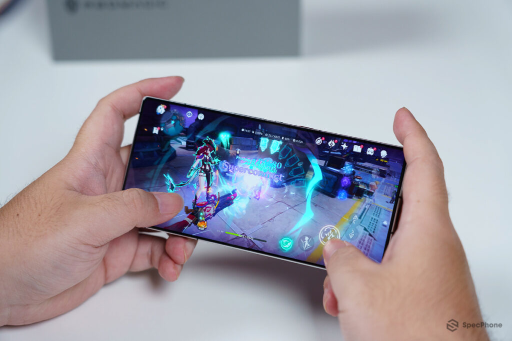 ทีนี้มาพูดถึงตอนที่เล่นเกมบ้าง โดยในการเล่นเกมเราได้เล่นผ่าน Game Space เพื่อให้ได้ประสิทธิภาพสูงสุด ซึ่งก็เรียกได้ว่าสุดจริง เนื่องจากไม่ว่าจะเป็นเกมไหน กินสเปคหนักเท่าไร ก็สามารถเล่นได้แบบลื่น ๆ ต่อเนื่องนาน ๆ โดยไม่มีอาการกระตุกเลยแม้แต่น้อย แถมด้วยระบบระบายความร้อนเฉพาะตัวเลยทำให้เครื่องแทบไม่ร้อนเลยแม้จะเล่นแบบเปิดสุดอย่างนั้นเป็นชั่วโมงเลยก็ตาม สำหรับตอนที่ทดลองเล่นผมได้ลองเล่นเกม RoV, PUBG Mobile, Call of Duty Mobile และ Genshin Impact ซึ่งเกม Genshin Impact นี่แหละที่ทำให้เห็นได้ชัดเจนที่สุด เพราะผมเปิดทุกอย่างจนสุด แถมเล่นไปเกือบ 2 ชั่วโมงจากการเดินเนื้อเรื่อง แต่อย่างที่บอกไปว่าเล่นไปขนาดนั้นแล้วเครื่องก็แทบไม่ร้อนเลย อยู่ในระดับที่ยังใช้คำว่าอุ่นได้อยู่เลยครับ