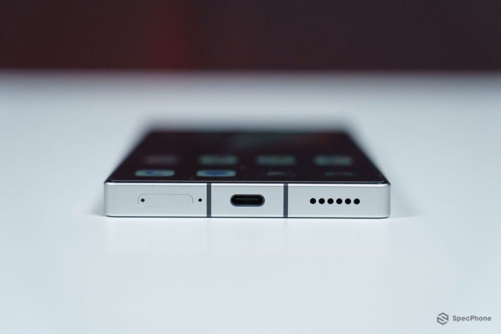 ในส่วนของขอบด้านบนจะมีช่องหูฟังขนาด 3.5 มม. ที่สมาร์ตโฟนส่วนใหญ่ตัดทิ้งไปแล้วอยู่ พร้อมด้วยเซ็นเซอร์อินฟาเรดและรูไมโครโฟน ส่วนขอบด้านล่างจะมีช่องใส่ซิม, รูไมโครโฟน และพอร์ต USB-C อยู่ ส่วนลำโพงนั้นจะเป็นลำโพงคู่ 1115K แบบสมมาตรระดับพรีเมียมที่ผ่านการรับรองคุณภาพเสียง DTS:X Ultra อีกด้วยครับ