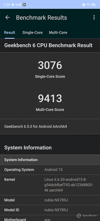 ในเรื่องของความแรงก็นับได้ว่าน่าสนใจ เพราะสามารถทำคะแนน AnTuTu ไปได้ถึง 3,302,951 คะแนน สำหรับคะแนน Geekbench 6 จากที่ได้ทดสอบนั้นคะแนนที่ได้นับว่าน่าสนใจไม่น้อย เพราะคะแนนแบบ Single-Core ทำได้ถึง 3,076 คะแนน และคะแนนแบบ Multi-Core ทำได้ 9,413 คะแนน ส่วนคะแนน GPU OpenCL ทำได้ 20,521 คะแนน และ Vulkan ทำได้ 26,310 คะแนน ซึ่งสูงกว่า Snapdragon 8 Elite For Galaxy ใน Samsung Galaxy S25 Ultra ที่เป็นชิปแบบโอเวอร์คล็อกเหมือนกันอีก (Galaxy S25 Ultra ทำคะแนน AnTuTu ได้ 2,156,040 คะแนน | Geekbench 6 Single-Core ได้ 2,856 คะแนน Multi-Core ได้ 9,464 GPU OpenCL ได้ 17,946 คะแนน Vulkan ได้ 23,829 คะแนน)