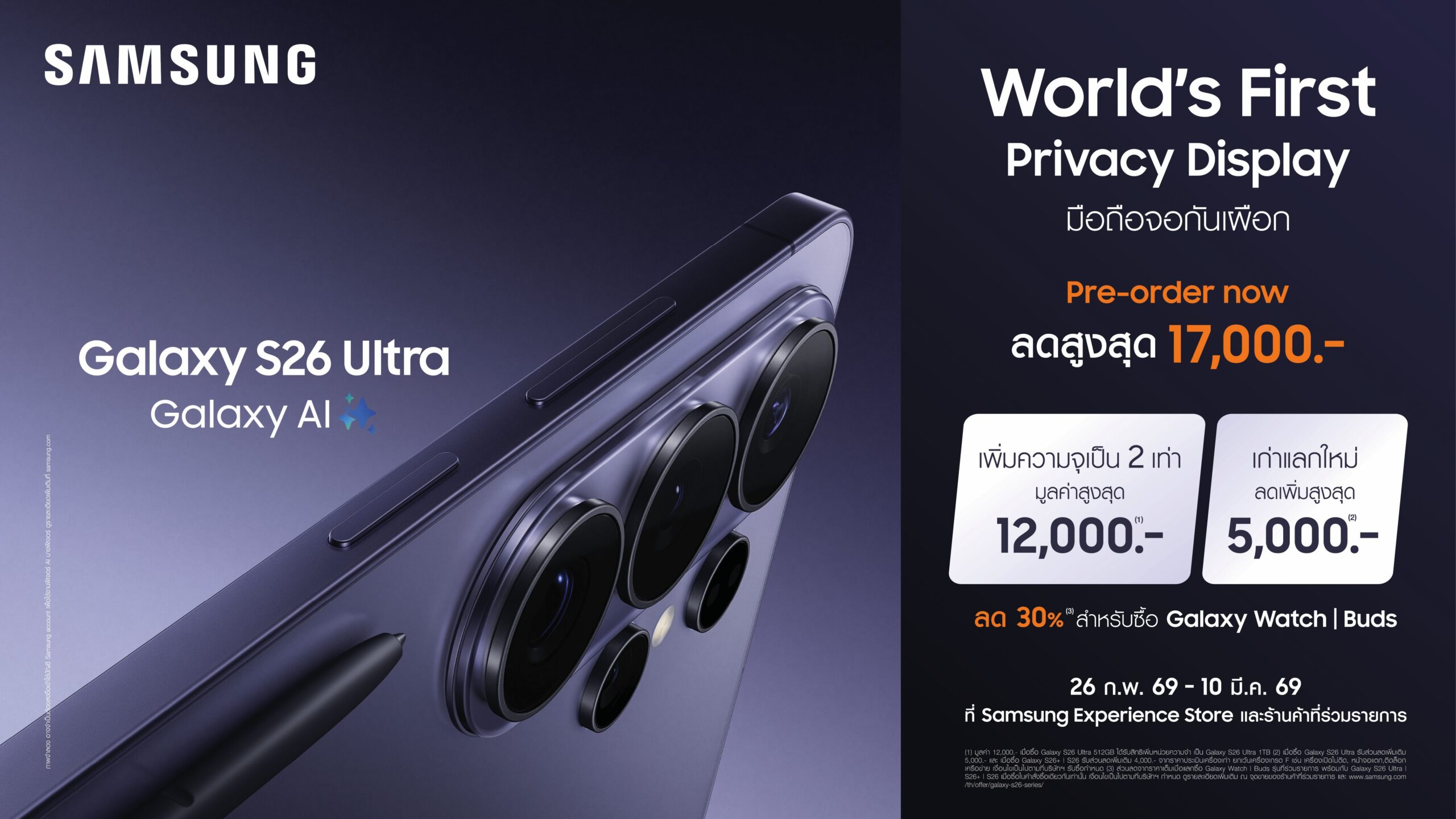 สามารถดูรายละเอียดโปรโมชันเพิ่มเติมได้ทาง https://smsngshop.com/s26-preorder-pr