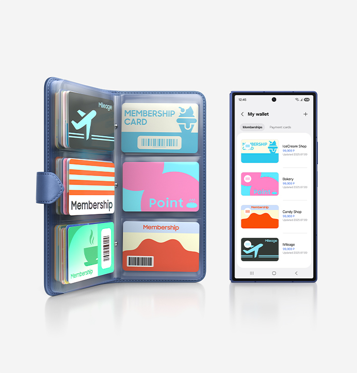 ผู้ใช้สามารถจัดเก็บบัตรเครดิต เดบิต และบัตรสมาชิกร้านค้าต่าง ๆ ไว้ใน Samsung Wallet เพื่อใช้สแกนสะสมแต้ม หรือแลกรางวัลได้ทันที พร้อมรองรับการใช้งาน Digital Keys สำหรับกุญแจรถยนต์ บัตรเข้าออกออฟฟิศ คอนโด หรือบ้าน ผ่านระบบ NFC นอกจากนี้ยังเชื่อมต่อกับ Samsung Pass เพื่อจัดเก็บรหัสผ่านอย่างปลอดภัย และเข้าสู่ระบบบริการต่าง ๆ ได้อย่างรวดเร็วในคลิกเดียว