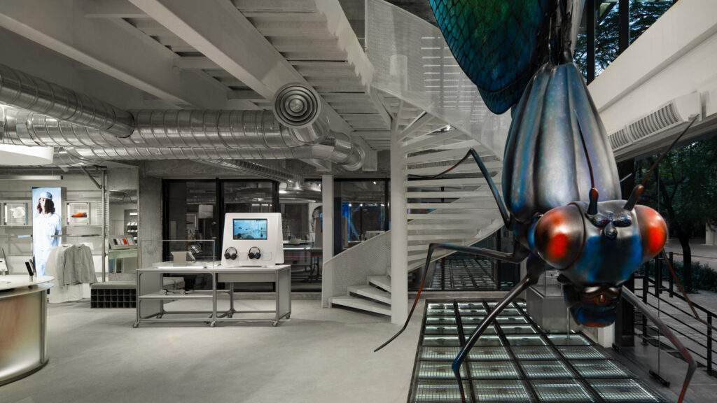 พื้นที่ขนาด 5,032 ตารางฟุต บน 2 ชั้น ได้แรงบันดาลใจจากไลน์การผลิตและเวิร์กช็อปยุค 70s เปลี่ยนเอกลักษณ์ดีไซน์ของ Nothing ให้กลายเป็นพื้นที่ที่มีชีวิตและมีส่วนร่วมจริง ๆ ใจกลางของร้านคือ “การแสดงตัวตน” ที่นี่คือที่เดียวในโลกที่ลูกค้าสามารถปรับแต่งสินค้า Nothing ให้เป็นสไตล์ของตัวเองได้ พร้อมสตูดิโอสำหรับครีเอเตอร์ ใช้ถ่าย unboxing หรือทำคอนเทนต์แบบลงมือจริง